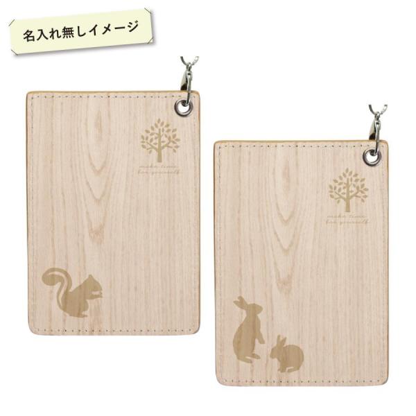 オリジナルネーム パスケース ICカード カード 定期入れ IDカード リール付き 木目 シルエット 動物 リス うさぎ シカ 名前入り