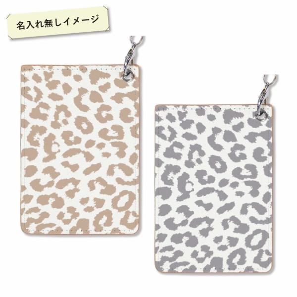 オリジナルネーム パスケース ICカード カード 定期入れ IDカード リール付き シンプル レオパード ヒョウ柄 名前入り