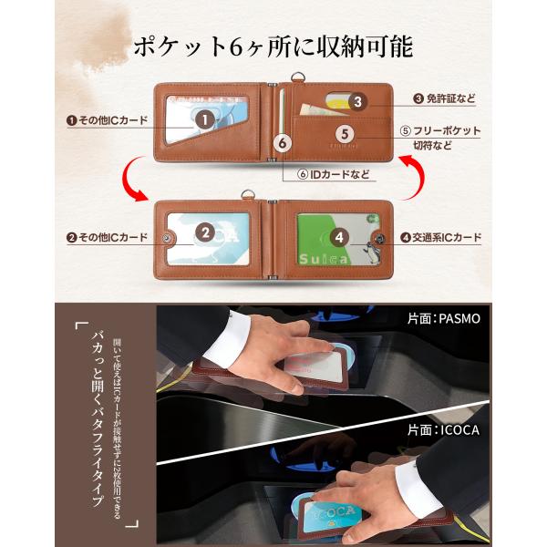 パスケース メンズ 本革 定期入れ ストラップ付き ICカード2枚収納 バタフライ式 カードケース IDカードホルダー 5枚収納 薄型 軽量 通学 プレゼント