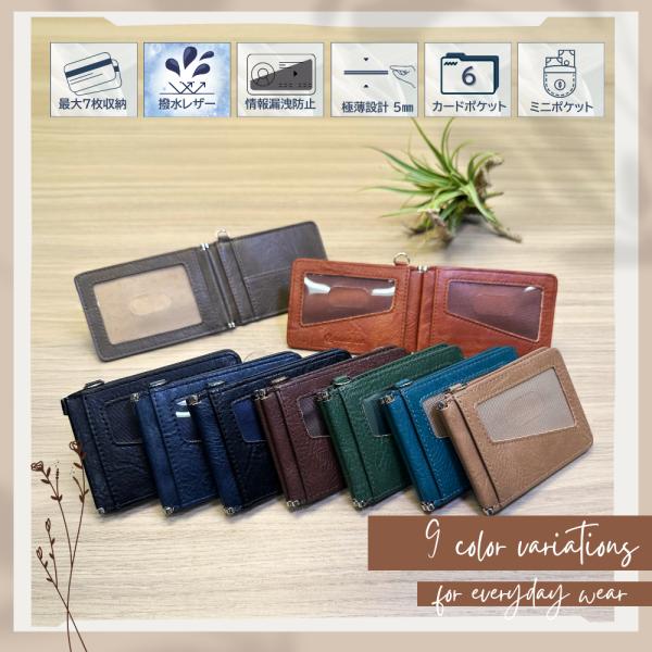 ストラップ付き 超お得!二つ折りカードケース 7枚収納 9色展開 ギフトBOX付 メンズ レディース 撥水レザー