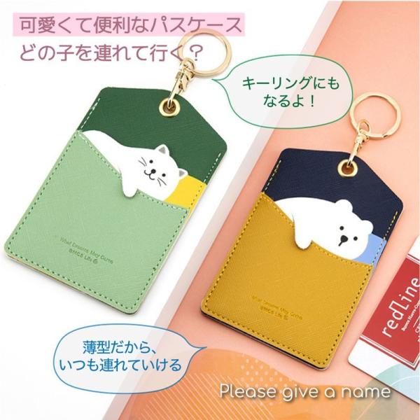 定期入れ レディース パスケース 子供 学生 女子 かわいい 両面 ケース シロクマ icカード2枚 動物 薄型 2枚 ゆるキャラ 通勤 学生入学祝い 可愛い 革 パス