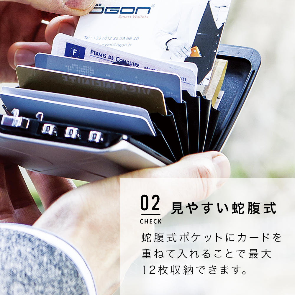 財布 クレジットカードケース スキミング防止 メンズ 薄型 鍵 名入れ 無料 アルミ コードロック OGON オゴン 正規日本代理店