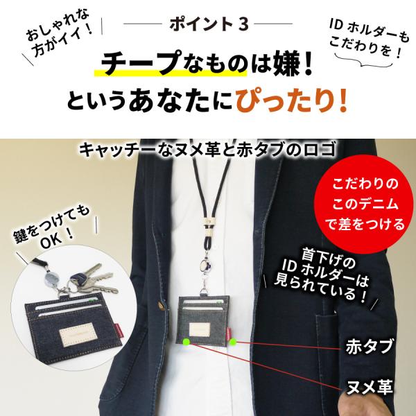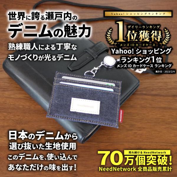 IDカードホルダー 日本が誇るデニム パスケース リール付き ネームホルダー カードホルダー IDケース 社員証 ケース メンズ レディース 横型 首かけ 首掛け