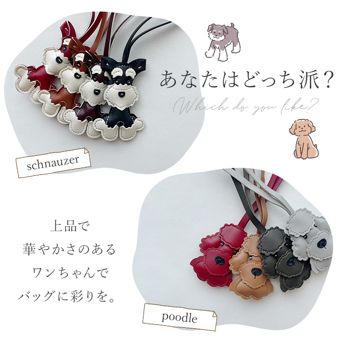 バッグチャーム 犬 チャーム 送料無料 シュナウザー プードル 合皮 レザー チャーム バッグ アクセサリー キーホルダー フェイクレザー かわ 爆買