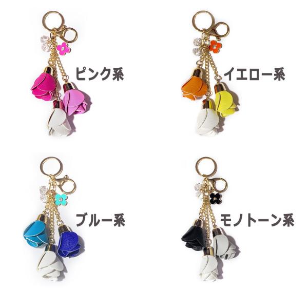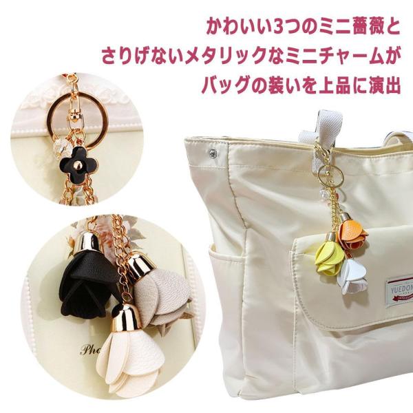 バッグチャーム 大人 かわいい チャーム キーホルダー キーリング 花 3連 ミニバラ 薔薇 ピンク チェーン PUレザー シンプル おしゃれ レディース 送料無料