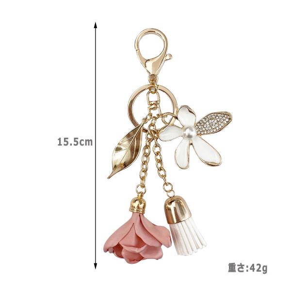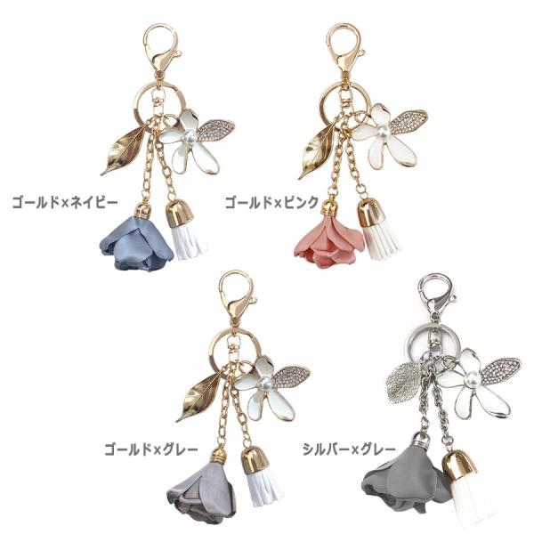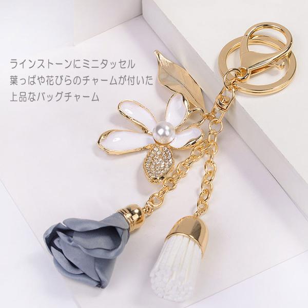 バッグチャーム 大人 かわいい チャーム キーホルダー キーリング 花 ラインストーン ミニタッセル キラキラ チェーン シンプル おしゃれ レディース 送料無料