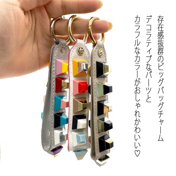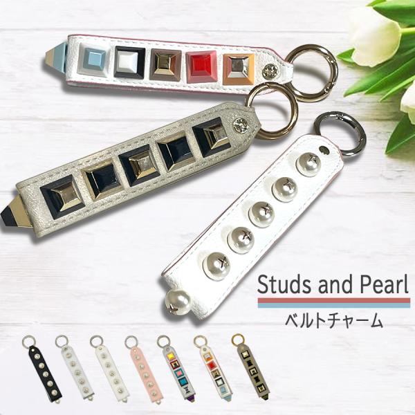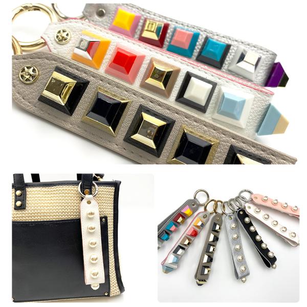 バッグチャーム ベルト チャーム レザー パール スタッズ ブロック カラビナ 大人可愛い 大きめ 雑貨 キーホルダー 小物 スマホアクセ グッズ おしゃれ 可愛い