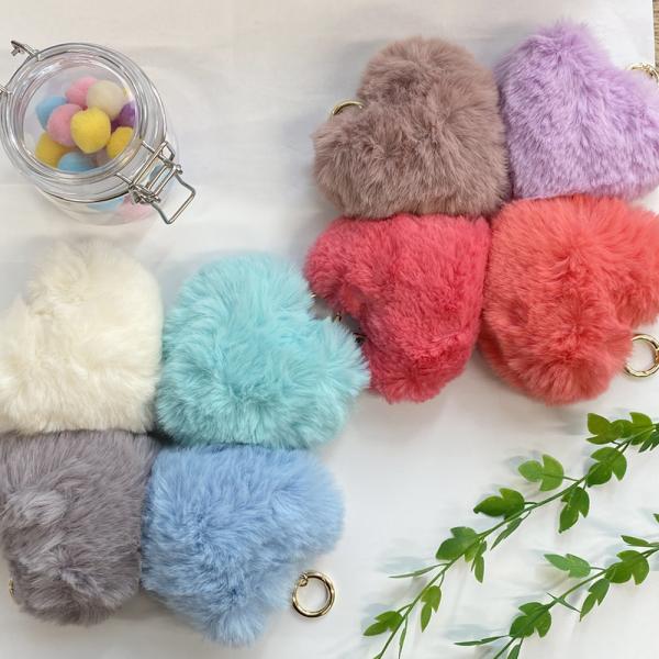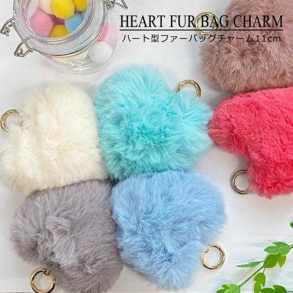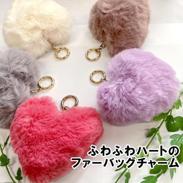 ハート ファー リング チャーム ポンポン ファーチャーム ファーストラップ バッグチャーム バッグ キーホルダー キーリング ポンポン もこもこ ふわふわ