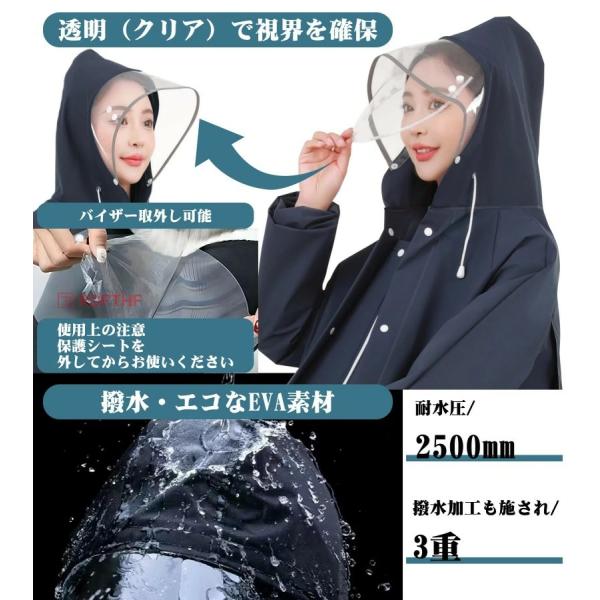レインコート レディース メンズ 【二重透明レインバイザー付き】レインウェア 自転車 リュック対応 ロング丈 自転車 防風 防水 軽量 豪雨 梅雨対策 通学 通勤