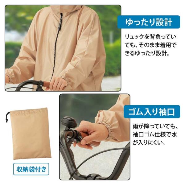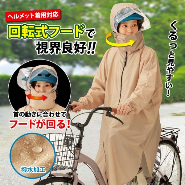 カッパ 雨合羽 雨具 レインウェア レディース リュック対応 ヘルメット対応 撥水 反射帯 フード 収納袋 通勤 通学 アウトドア 雨でも見やすい回転式レインコート
