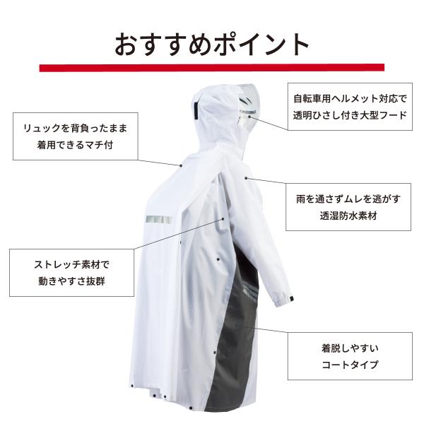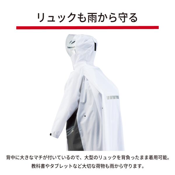 レインコート 中学生 リュック対応 透湿 撥水 耐水 軽量 安全 自転車 通学 レインウェア カッパ レディース メンズ 女子 男子 白 学生 高校生 FC-7120
