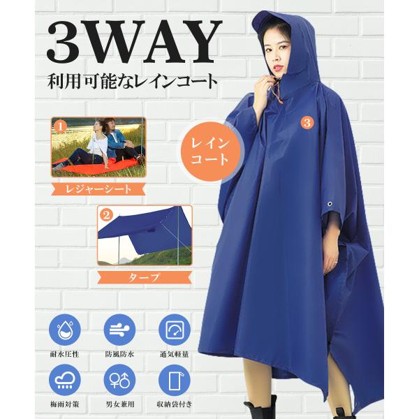 レインコート 自転車用 収納袋付き レインポンチョ ロング丈 レインウェア リュック対応 タープ 通勤 通学 雨合羽 カッパ 防水 男女兼用