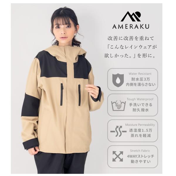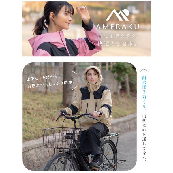 レインウェア 上下セット レインスーツ レディース 登山 自転車 ゴルフ カッパ 透湿防水 レインパンツ レインジャケット 雨合羽 アメラク 通学