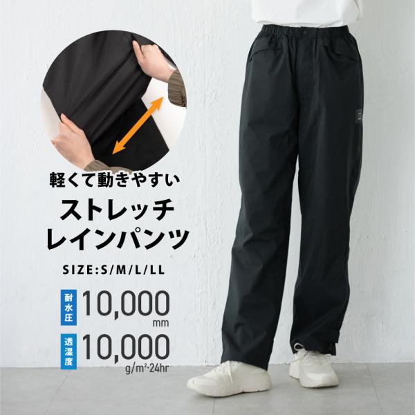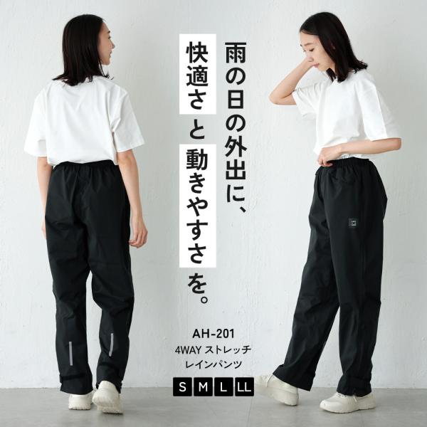 レインパンツ メンズ レディース 軽量 ストレッチ 前開き 裾ファスナー 防水 透湿 自転車 雨具 レインコート ズボン AH-201 4WAYストレッチレインパンツ