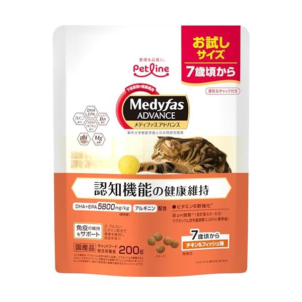 メディファスアドバンス キャットフード 認知機能の健康維持 7歳頃から チキン&フィッシュ味 【下部尿路/国産/お試し】200g
