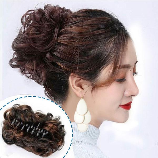 お団子ヘア バンスクリップ おだんご ポイントウィッグ ふんわり カール エクステ 部分ウィッグ かつら つけ毛 アップヘア カツラ WIG BUN 007