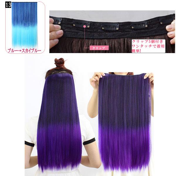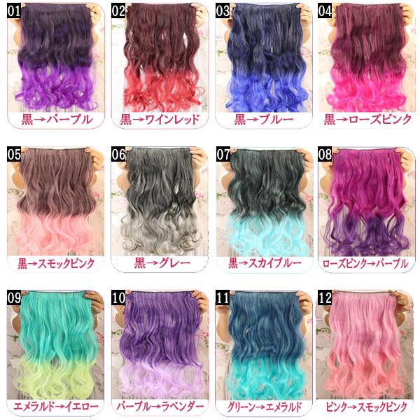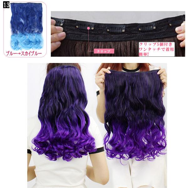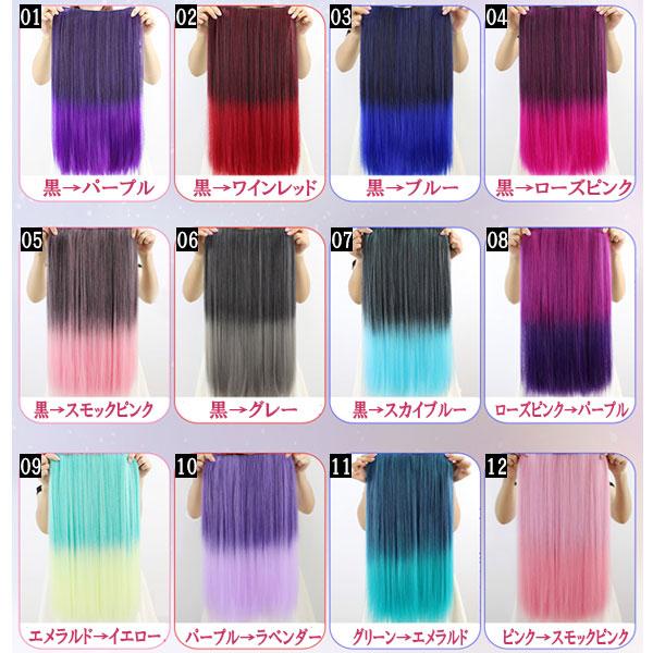 グラデーション エクステ ウィッグ ストレート カール カラーウィッグ ロング エクステンション 耐熱 カラフル 付け毛 つけ毛 コスプレ襟足 WIG EXT 021