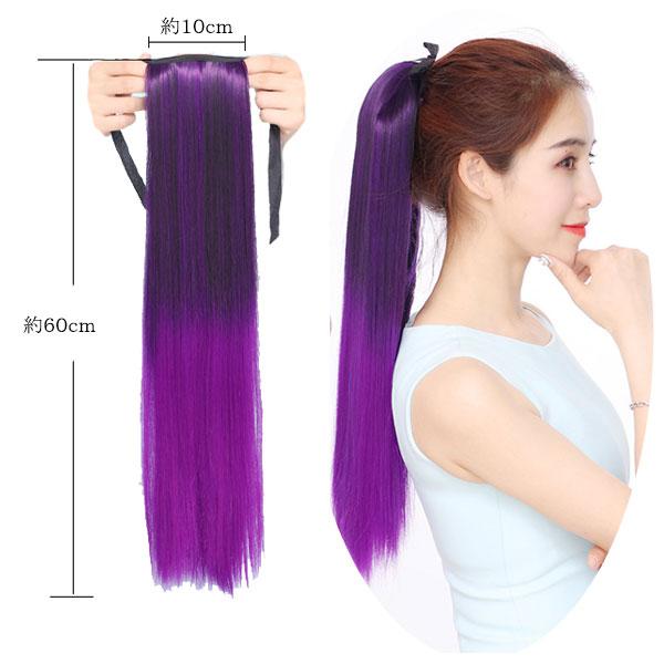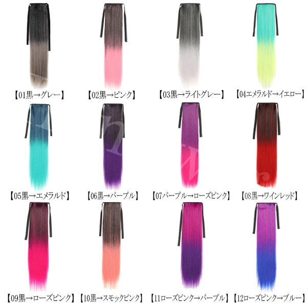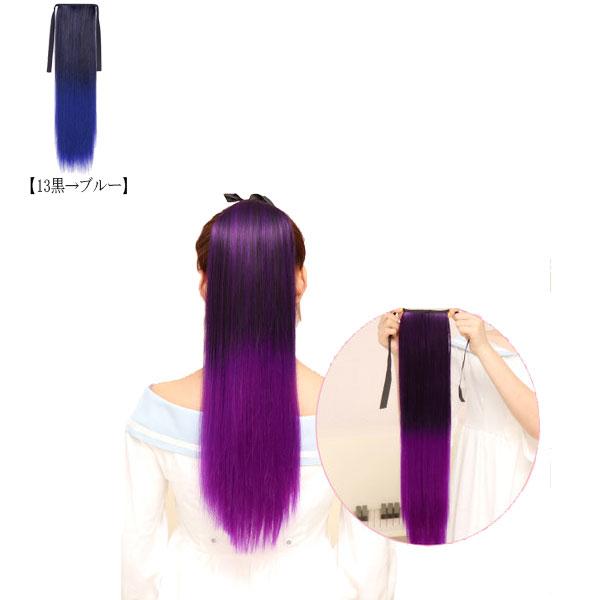 ポニーテール リボン グラデ色 ポイントウィッグ ロング ストレート カール グラデーション カラー エクステ ウイッグ 付け毛 つけ毛 POINT WIG 014