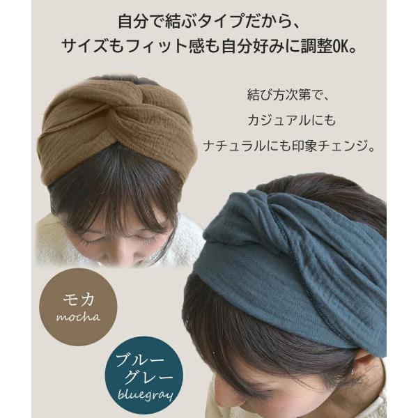 ヘアバンド メンズ レディース サイズ調整 ターバン Wガーゼ カチューム 洗顔 洗濯機で丸洗い可能 医療用 ネイビー ボルドー 灰色 ナチュラル 幅広 デイリー