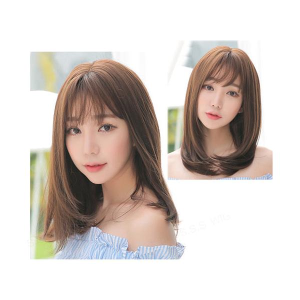 ウィッグ かつら ミディアム セミロング フルウィッグ レディース ストレート 自然 医療用 原宿系 小顔効果 ネット付き 耐熱