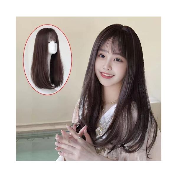 ウィッグ ロング ダークブラウンストレート フルウィッグ 自然 レディーズ かつら 耐熱 小顔 ファッション カツラ 普段 wig ナチュラル
