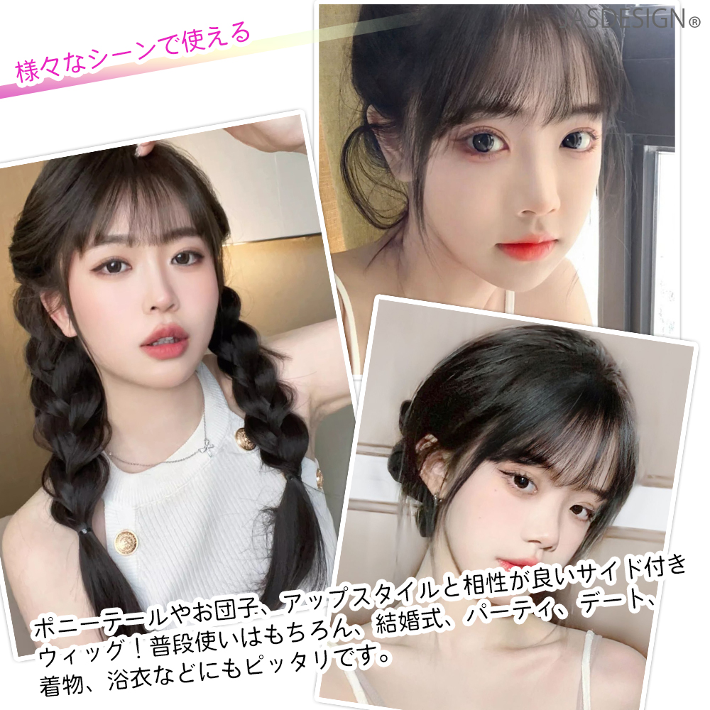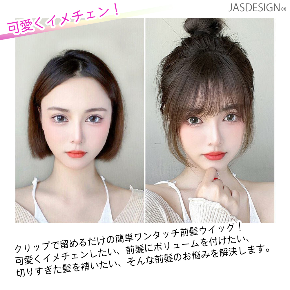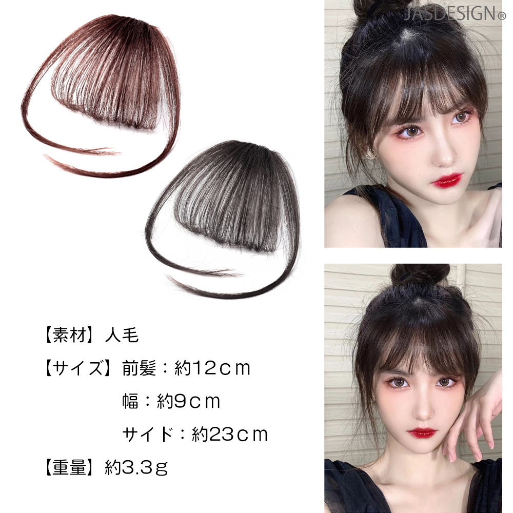 前髪ウィッグ サイドあり サイド付き エクステ 部分ウィッグ クリップ式 前髪ぱっつん 軽量 薄型 人毛 バレない 黒 茶 ブラック ブラウン 着用簡単 JM-340