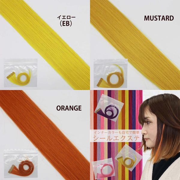 シール エクステンション 2本分 原色 プチプラ 推し色 ピンク レッド パープル オレンジ イエロー 52cm ビビット インナーカラー 人毛 シールエクステ 子供