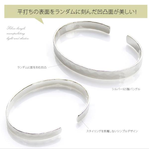 光と影の演出家 純銀 鎚目バングル シルバーアクセサリー ブレスレット シルバー925 メンズ シンプル b0683