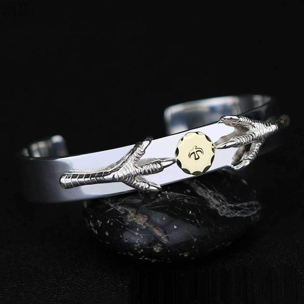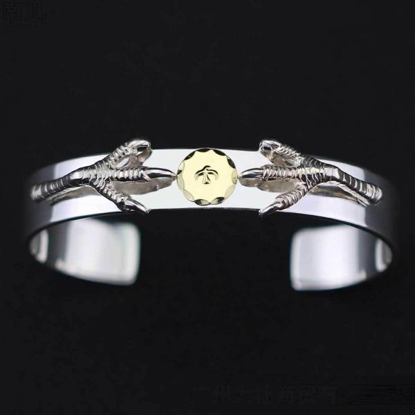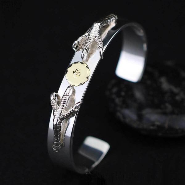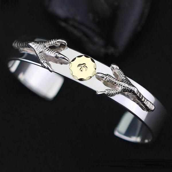 18金SVツメ付き平打ちブレス イーグルタイプ シルバーバングル 925 イーグルバングル イーグルメタル メンズ バングル ブレスレット 18金 受注生産