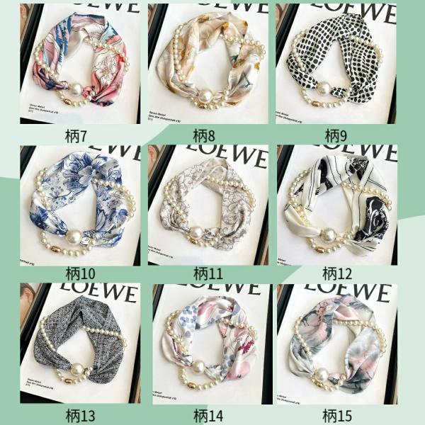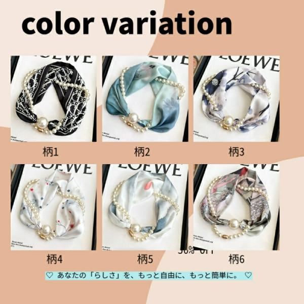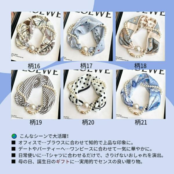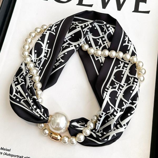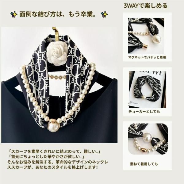 パールが煌めくスカーフ 首元がアクセントに! パールスカーフ 薄手スカーフ スカーフ シルク風スカーフ レディース マグネット式スカーフ パールネックレス付き