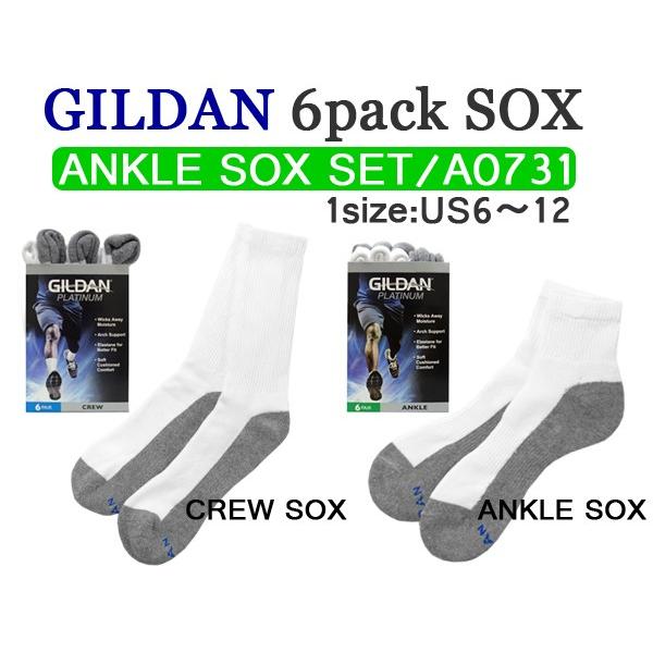 GILDAN(ギルダン)アンクルソックス 6足パック【GILD-AO731】6P SOX・靴下・ワンサイズ/US6-12インチ目安