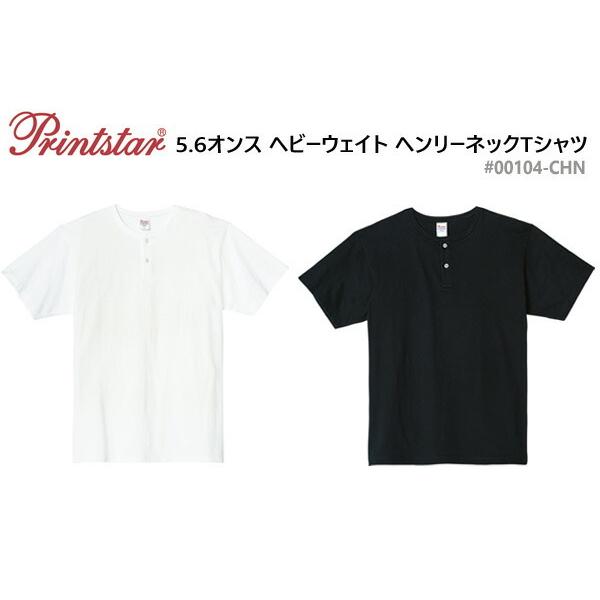 【S-XL】5.6oz ヘビーウェイト ヘンリーネックTシャツ プリントスター PRINTSTAR 00104-CHN 無地・半袖・ショートスリーブ
