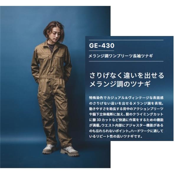 グレースエンジニアーズ つなぎ GE430 作業服 メンズ レディース 長袖ツナギ 作業着 作業服 メランジ調 ワンプリーツ オールシーズン