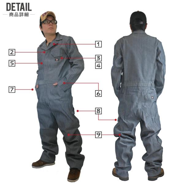 つなぎ 長袖 メンズ 作業服 Dickies ディッキーズ 48977 綿100% ヒッコリー 即日発送 サイズ交換可