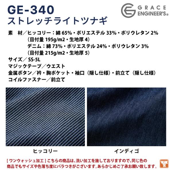 グレースエンジニア ストレッチデニム ヒッコリー 長袖つなぎ オーバーオール 春夏 秋冬 作業服 作業着 カジュアル おしゃれ メンズ レディース sk-ge340