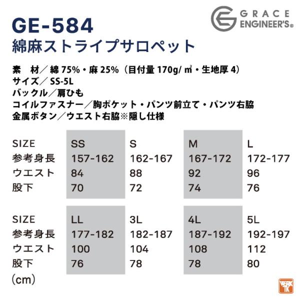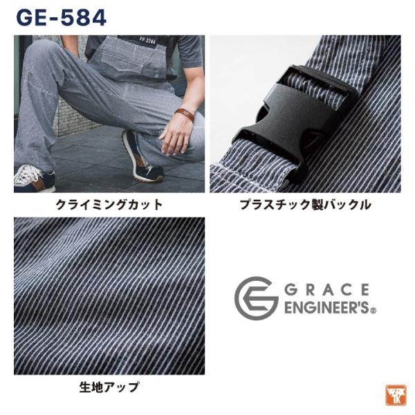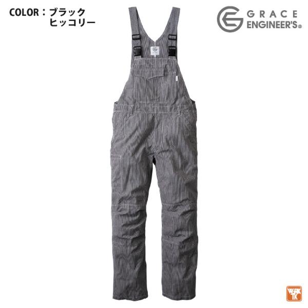 グレースエンジニア 薄手 綿麻 ヒッコリー サロペット オーバーオール つなぎ 涼しい ストライプ 春夏 作業服 作業着 酪農 農業 メンズ レディース sk-ge584