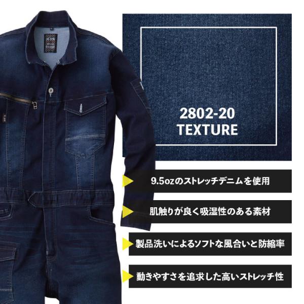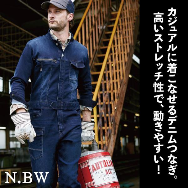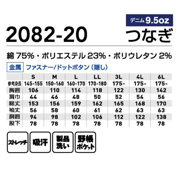 桑和 デニム つなぎ ストレッチ 製品洗い 吸汗 カジュアル おしゃれ 作業服 ユニフォーム 春夏 秋冬 SOWA 長袖 sw-2082-20-b