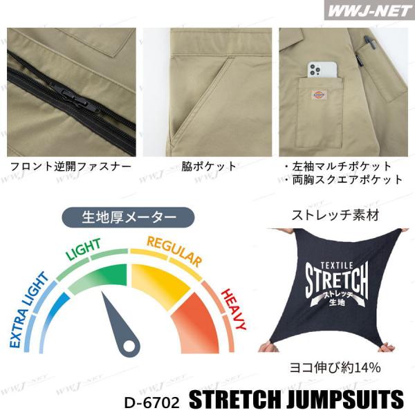 つなぎ服 Dickies D-6702 つなぎ 半袖 薄手 ディッキーズ 接触冷感 吸汗速乾 UVカット ストレッチ 男女 ツナギ ccd-6702 コーコス