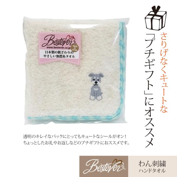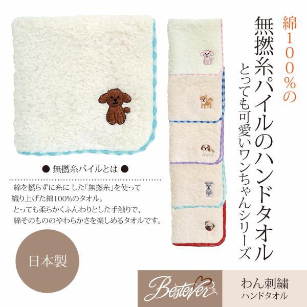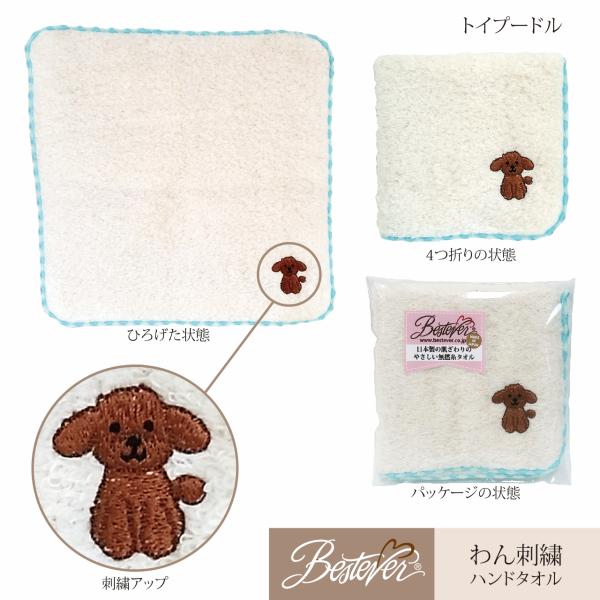雑貨 タオル ハンドタオル 犬 ドッグ いぬ 刺繍 ファンシー雑貨 ベストエバー アフレッシュフィーリング わん刺繍入りハンドタオル