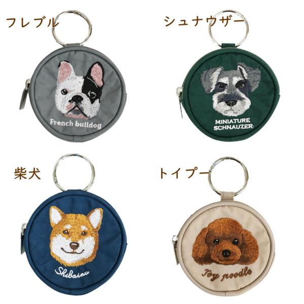 刺繍丸ポーチ シュナウザー/フレブル/柴犬/プードル 犬雑貨・犬グッズ・可愛い・小物ポーチ