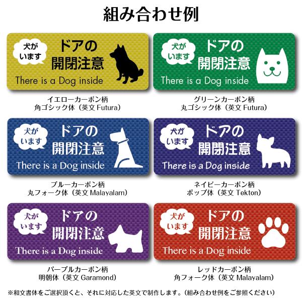 「犬がいます」 ドアの開閉注意マグネットステッカーカーボン柄【60mm×150mm】