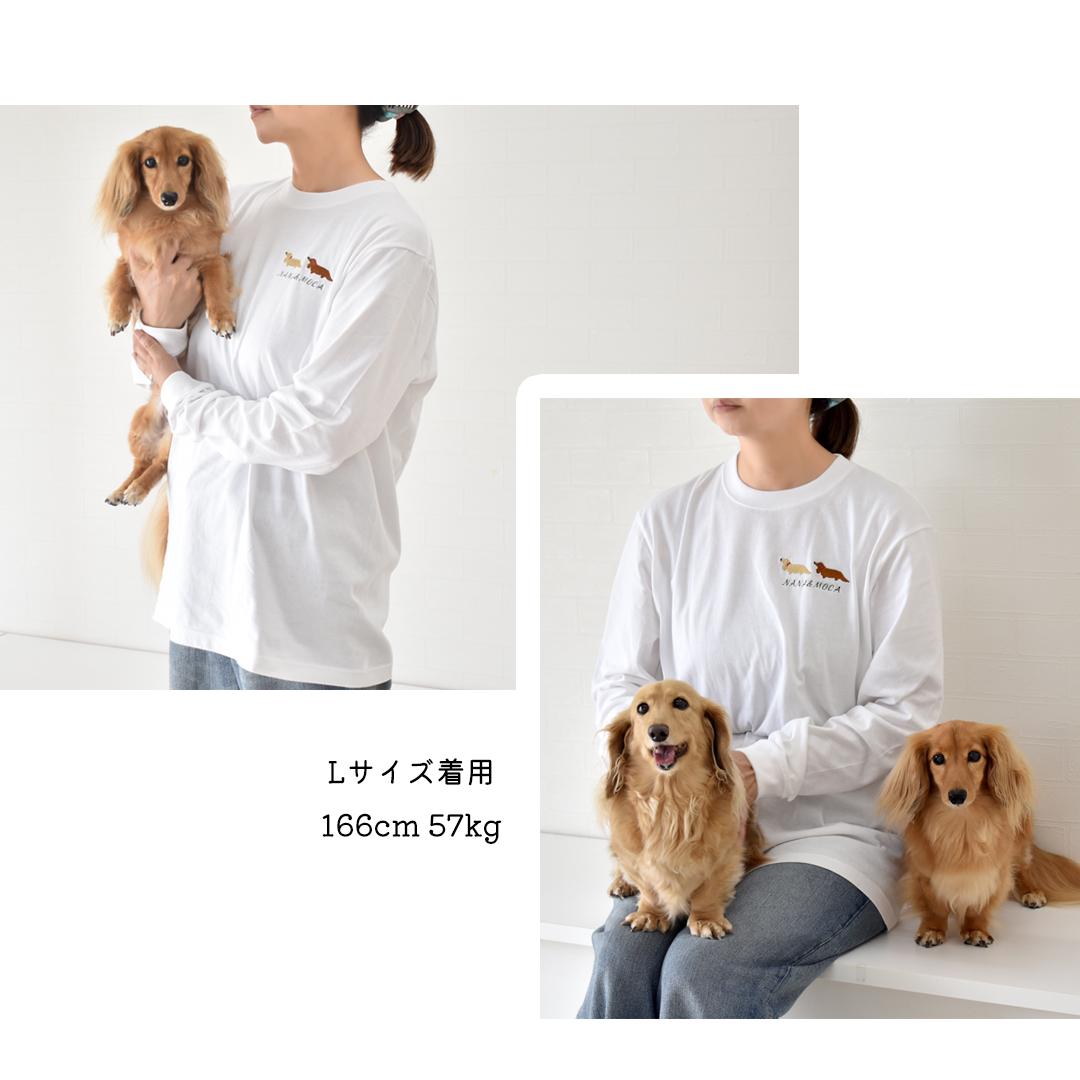 横愛犬ダックス刺繍 ロングTシャツ うちの子 コットン 綿 5.6oz ユニセックス メンズ レディース snowdrop ゆうパケット対応