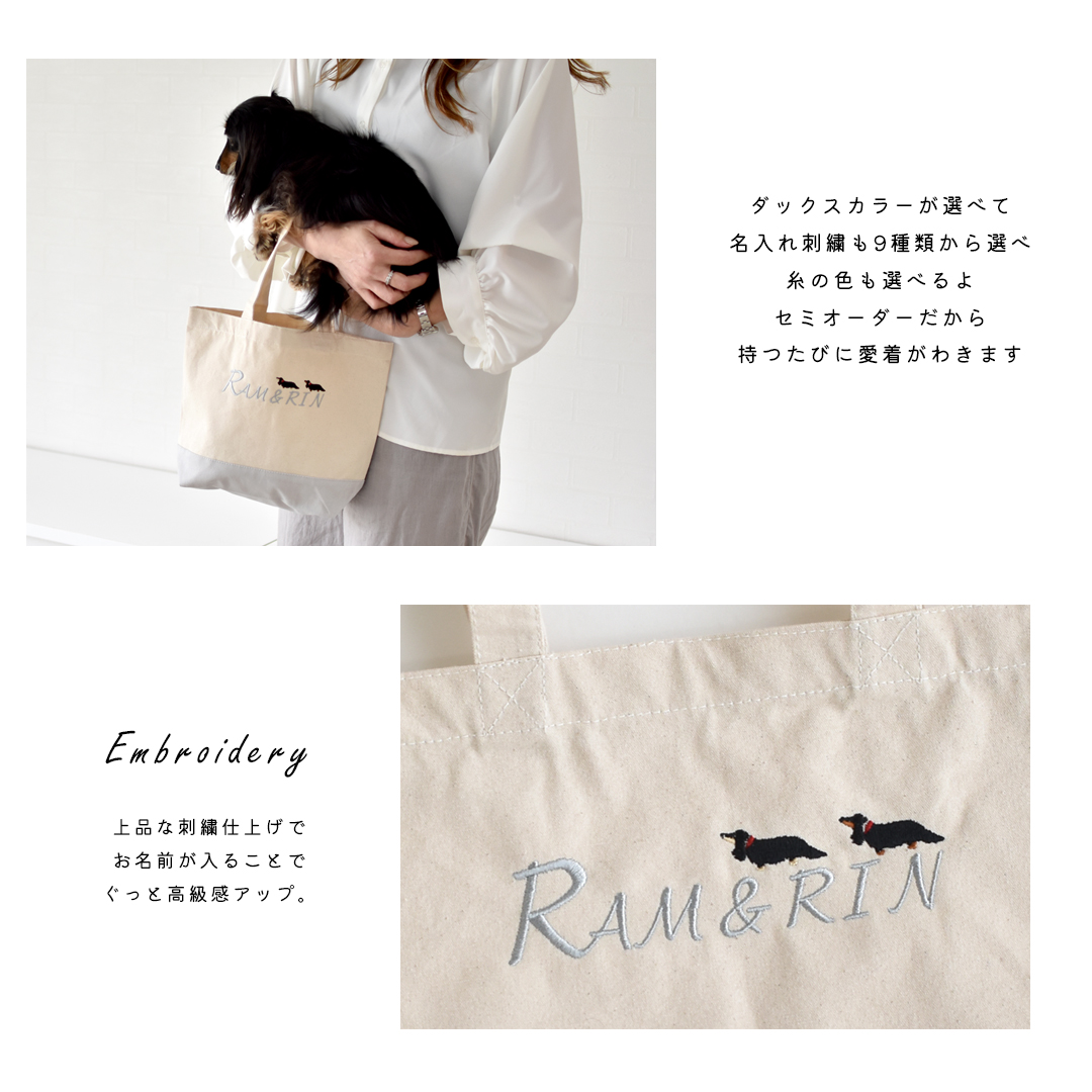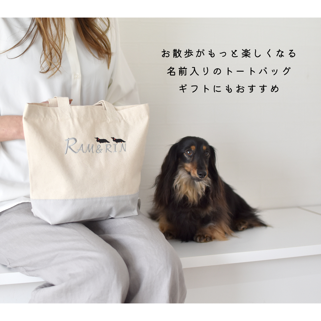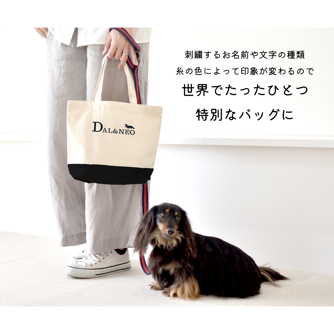 ツートンカラー トートバッグ 小さめお散歩バッグ オリジナル 愛犬 刺繍 ペットグッズ 犬用品 お散歩 帆布 軽量 ゆうパケット対応