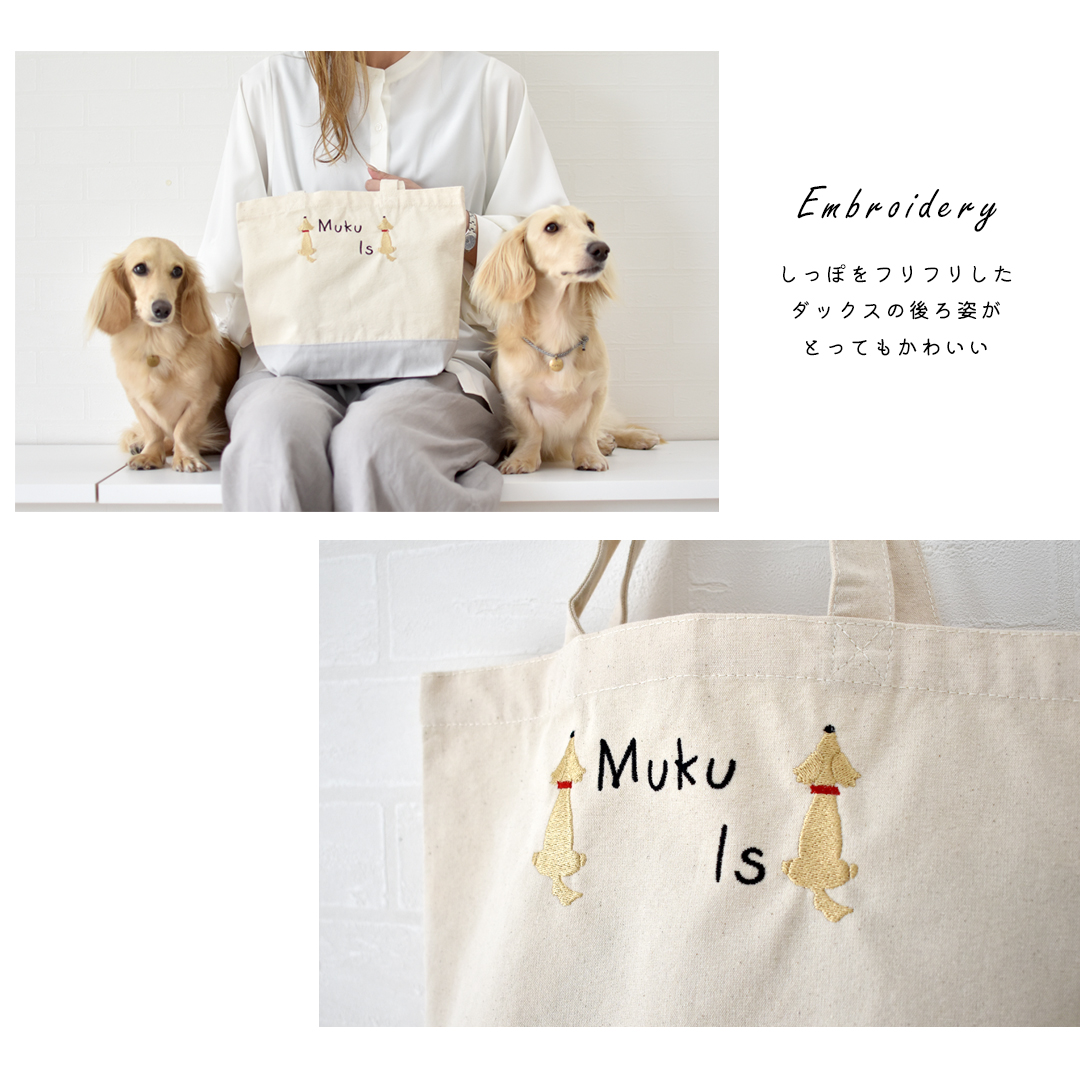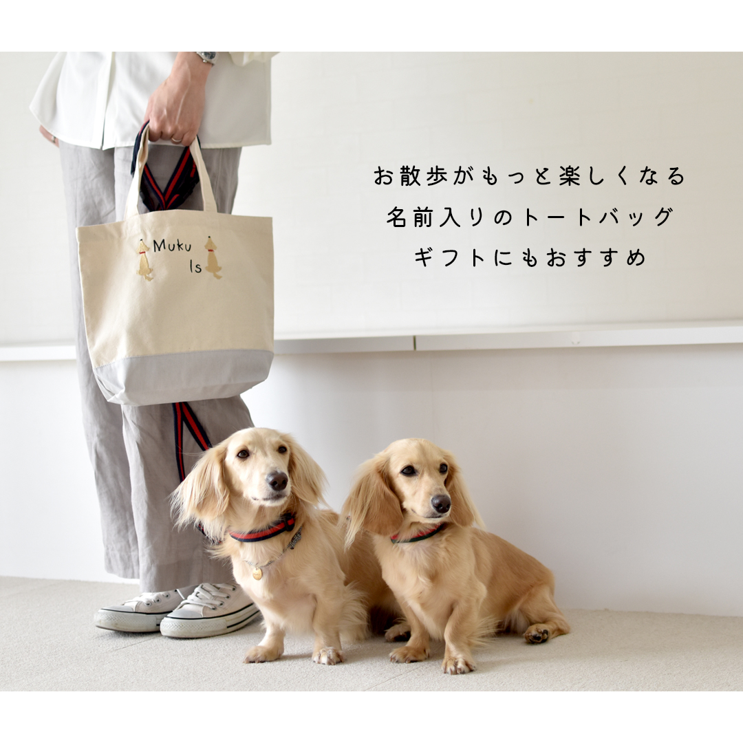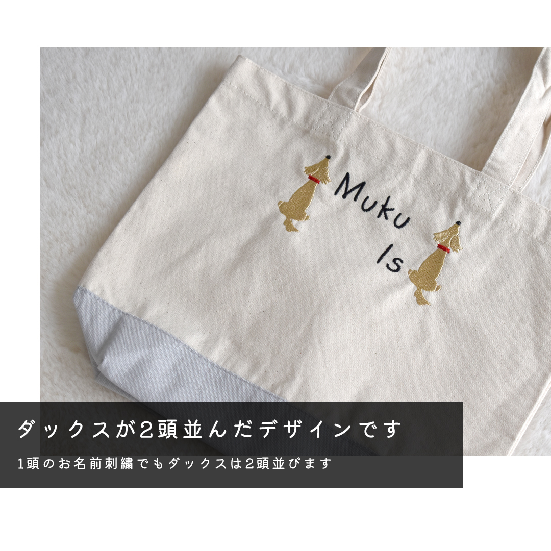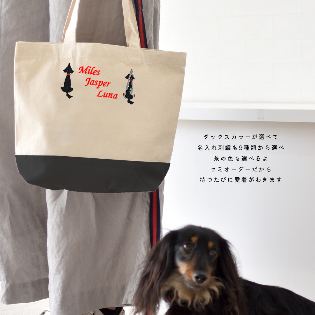 ツートンカラー トートバッグ 後ろ向きダックス 小さめお散歩バッグ オリジナル 愛犬 刺繍 ペットグッズ 犬用品帆布 軽量 ゆうパケット対応