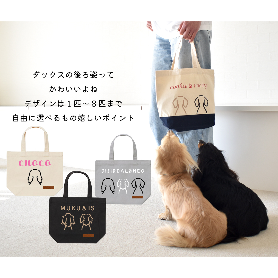 後ろ姿シルエットデザイン 小さめトートバッグ ランチバッグ ダックスお散歩バッグ ペットグッズ 犬用品 snowdrop ゆうパケット対応