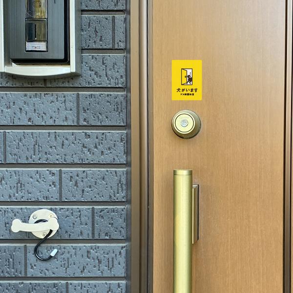 犬がいます 犬ステッカー(イエロー) ステッカー おしゃれ 脱走防止 玄関 飛び出し注意 車 シール ドア いぬ 防水加工 雑貨