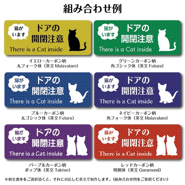 「猫がいます」 ドアの開閉注意マグネットステッカーカーボン柄【60mm×150mm】