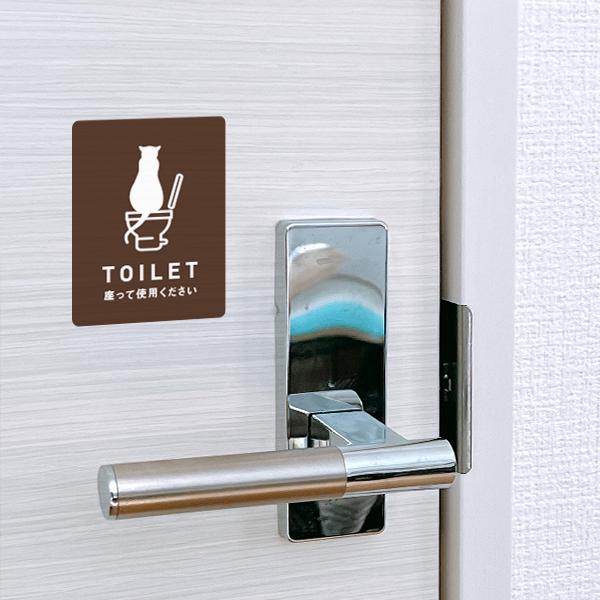 ステッカー おしゃれ TOILET トイレ 猫ステッカー(ブラウン) トイレ ドア 新築 シール ねこ 防水加工 雑貨