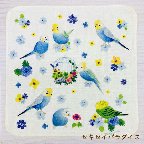 ☆ハンカチ☆ セキセイパラダイスとボタニカルシリーズ 鳥雑貨・ことりグッズ☆セキセイインコ★オカメインコ★文鳥☆