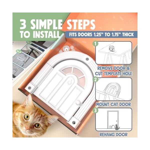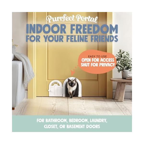 並行輸入品 Purrfect Portal インテリアキャットドア - フラップなし キャットドア インテリアドア 最大20ポンドまでの猫用 簡単DIY設定 数分で取り付け